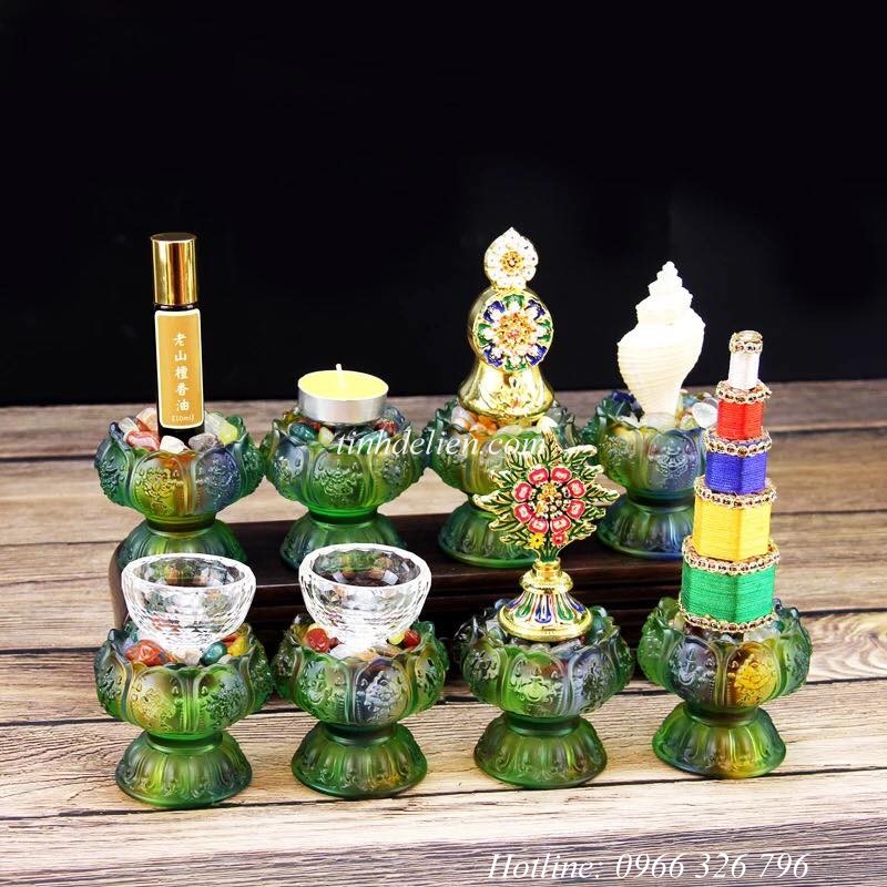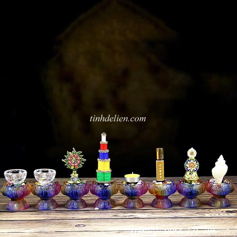 Phẩm cúng dường bày từ trái qua phải, đếm từ phẩm thứ nhất đến thứ 8. Thu dọn theo chiều ngược lại.