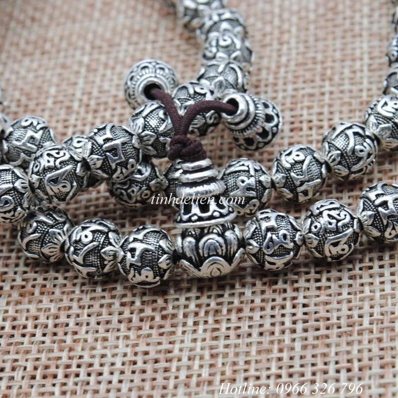 Chuỗi Bạc khắc thần chú om mani padme hum được làm thủ công, rất tỉ mỉ và cẩn thận, mang ý nghĩa vô cùng to lớn. Qúy vị có thể dùng chuỗi để hành trì, ghi nhớ số lần tụng chú, niệm Phật, Chuỗi cũng giúp hành giả nhiếp tâm hơn khi hành trì các nghi quỹ hằng ngày.