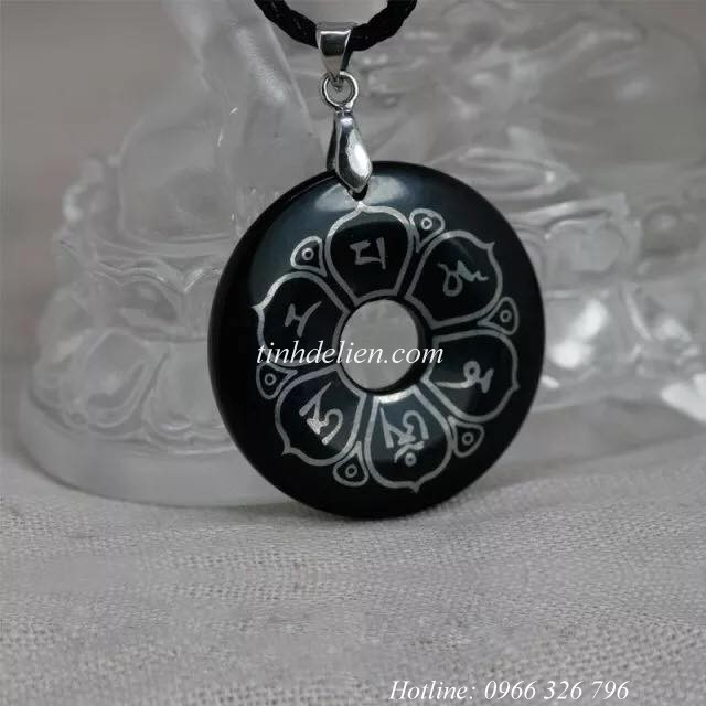 Tên sản phẩm : Mặt Dây Chuyền Đá Mã Não Đen Khắc Thần Chú Văn Thù Sư Lợi Bồ Tát