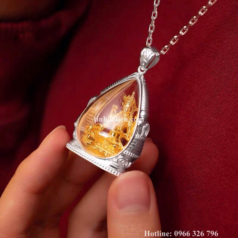 Chất liệu : Vỏ ngoài Bạc S925 nguyên chất, tượng Phật bạc mạ vàng