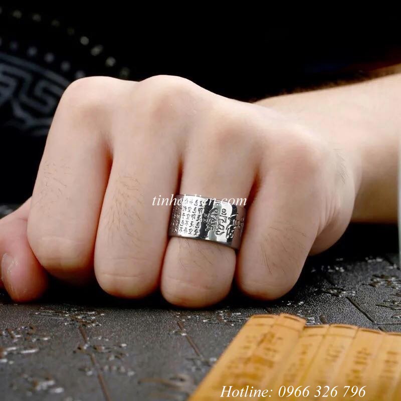 Tên sản phẩm :Nhẫn Đeo Tay Khắc Om Mani Padme Hum Và Bát Nhã Tâm Kinh