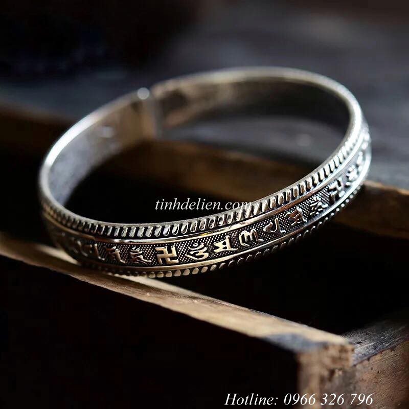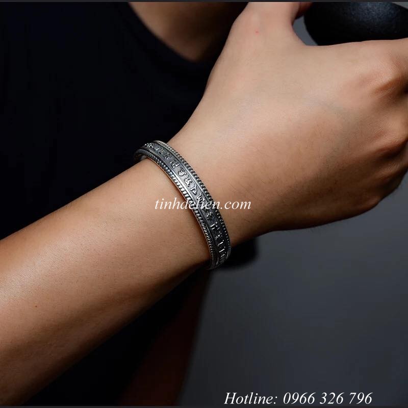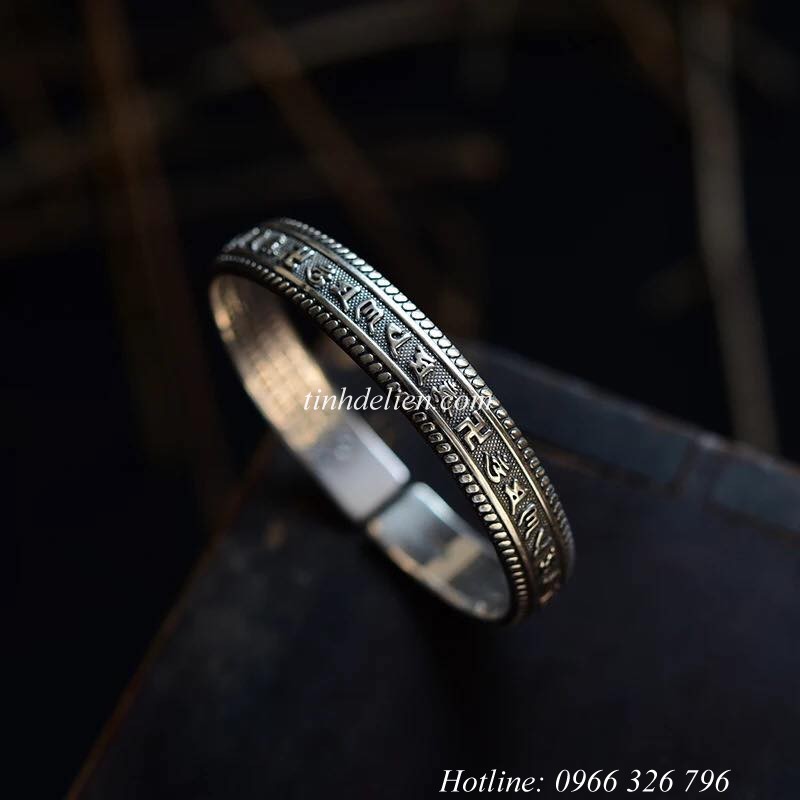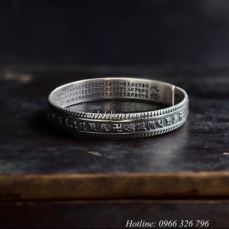 VÒNG BẠC ĐEO TAY KHẮC BÁT NHÃ TÂM KINH, OM MANI PADME HUM VÀ CHỮ VẠN