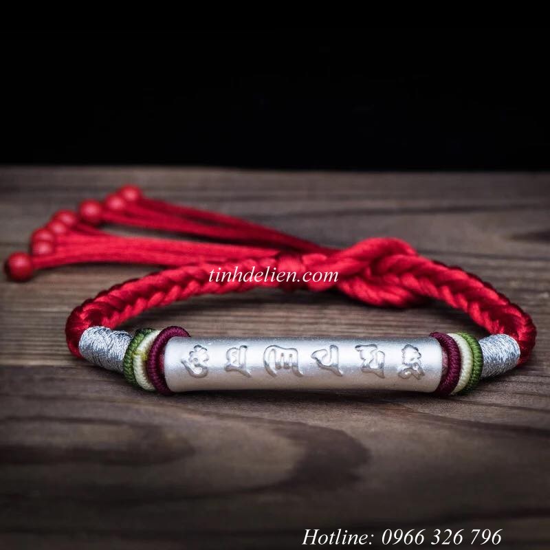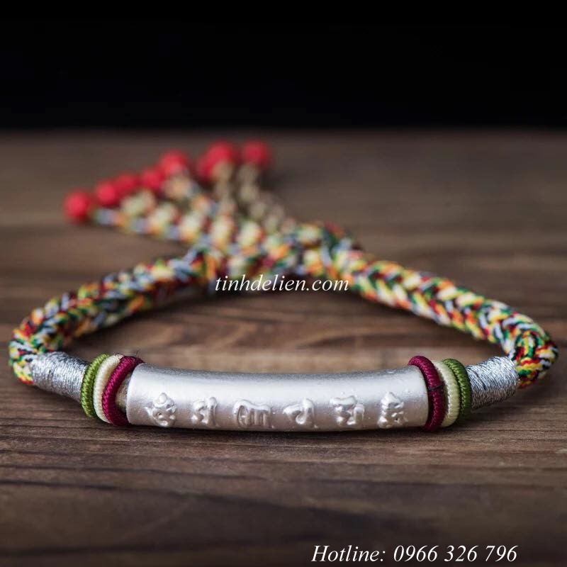 Tên sản phẩm :Vòng Đeo Tay Chỉ Ngũ Sắc Kết Hợp Charm Bạc Om Mani Padme Hum